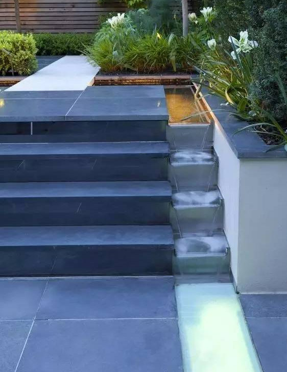 噴泉中的水分層連續(xù)流出,或呈臺階狀稱為疊水。“有山皆是園,無水不成景”,高低錯落的臺階,清脆悅耳的潺潺流水,給人以回歸自然的享受。