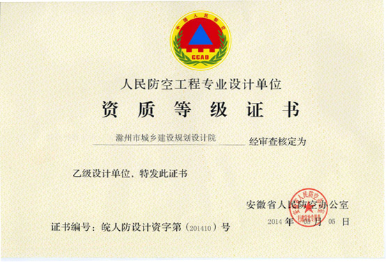 經(jīng)過建筑室、辦公室和總師室的共同努力,我院申報的人防工程設(shè)計乙級資質(zhì),于2014年5月5日獲得安徽省人民防空辦公室批準,這標志著我院可以承擔本省范圍內(nèi)2萬平方米以下人防工程建設(shè)項目(不含各類人防指揮所、專業(yè)隊工程、醫(yī)療救護工程、一等人員掩蔽部)主體工程、配套工程及地面附屬設(shè)備設(shè)施用房的設(shè)計業(yè)務(wù)。