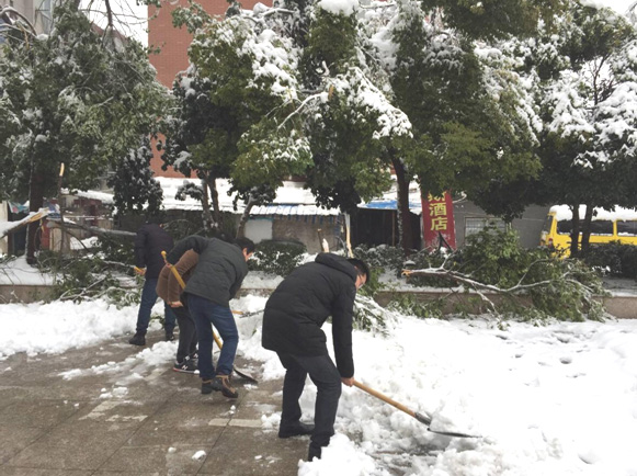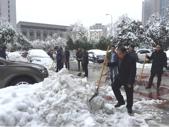 元月5日上午8點(diǎn),上班伊始,全院干部職工備齊工具,開始清掃路上、綠化樹木上的積雪, 盡管路面濕滑,十分寒冷,但廣大干部職工個(gè)個(gè)熱情高漲,扛著鐵鍬、拿著竹桿積極投入到除雪保綠行動(dòng)中。經(jīng)過近3個(gè)小時(shí)的連續(xù)奮戰(zhàn),及時(shí)清掃了單位停車場(chǎng)、附近清流西路段道路兩旁以及綠化樹木上的積雪,并清除被積雪壓斷了的景觀樹干,為周圍居民出行清掃出一條安全通道。
