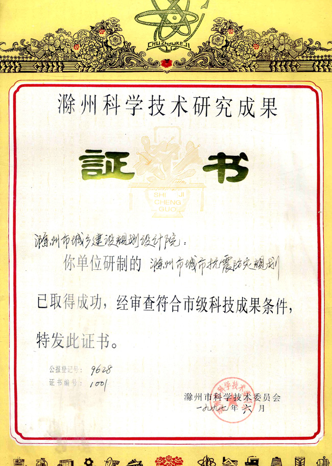 滁州市抗震防災(zāi)規(guī)劃(科技進(jìn)步三等獎).